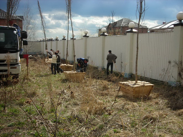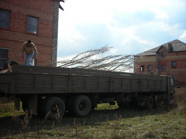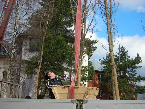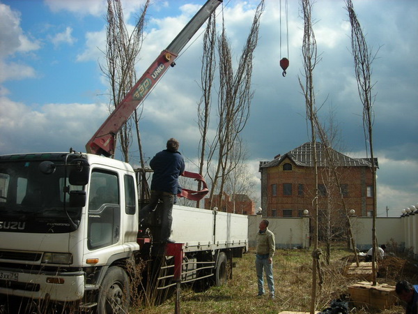 Посадка крупномеров (больших деревьев)