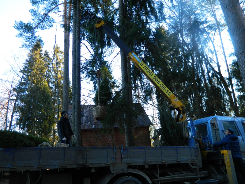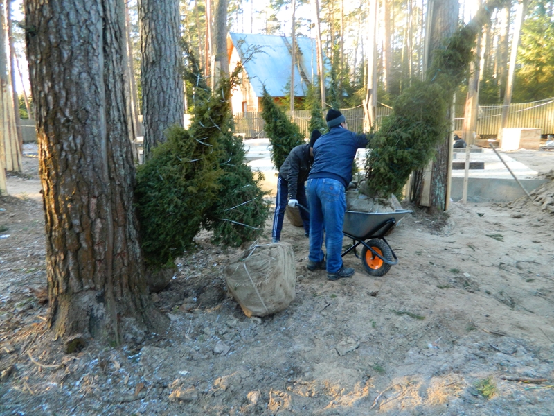 Посадка крупномеров (больших деревьев)
